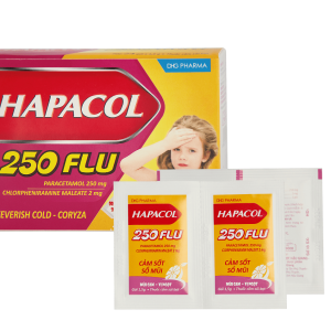 Cốm Hapacol 250 Flu DHG điều trị cảm sốt, sổ mũi (24 gói)