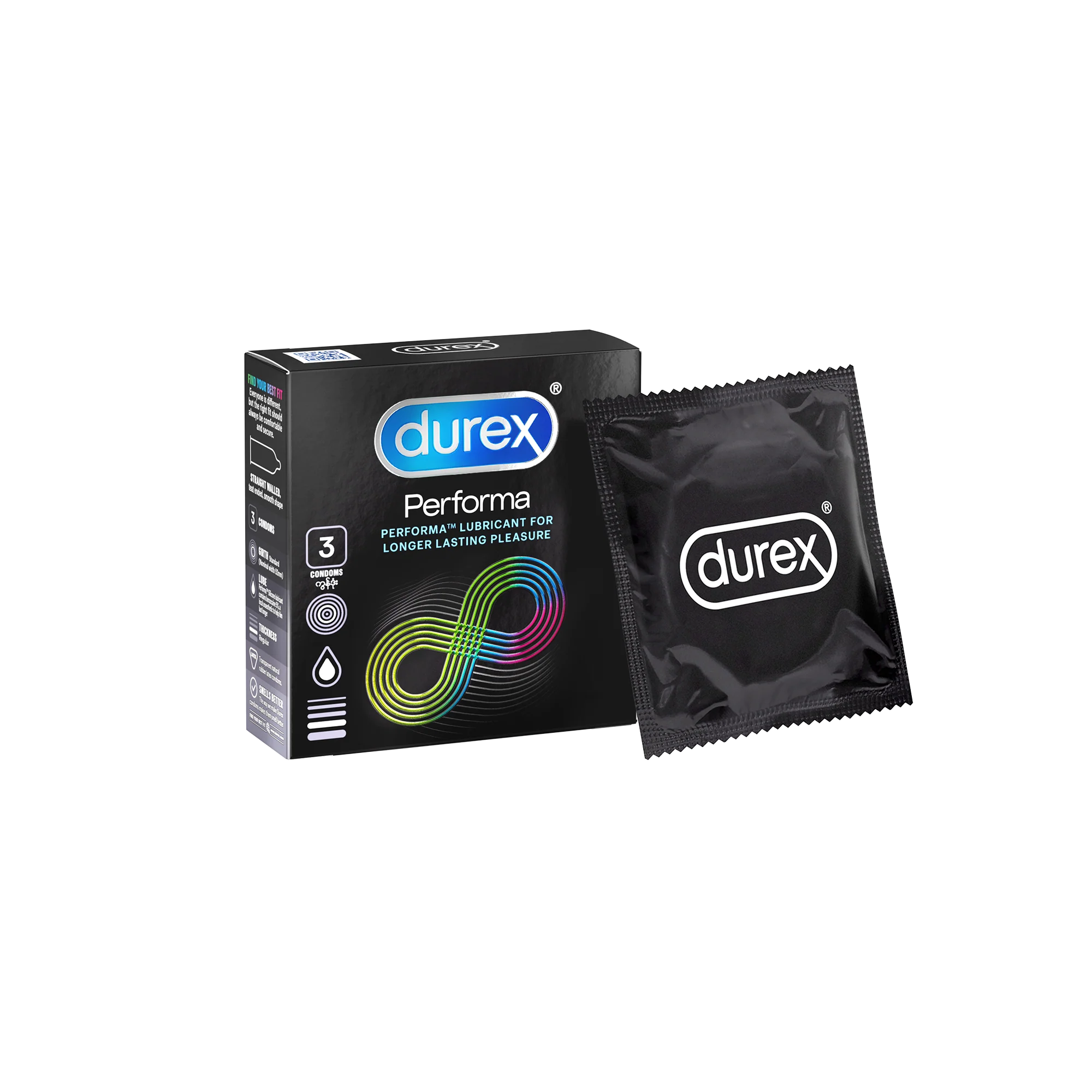 Xé dọc một bên gói Durex Performa, tránh làm rách bao cao su bên trong.