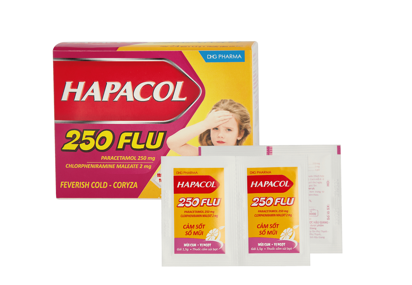 Sự phối hợp của Paracetamol và clorpheniramin trong Hapacol 250 Flu làm giảm nhanh các triệu chứng sốt, sổ mũi, nhức đầu. Đây là những triệu chứng thường xuất hiện khi bị cảm hoặc viêm mũi, viêm xoang.