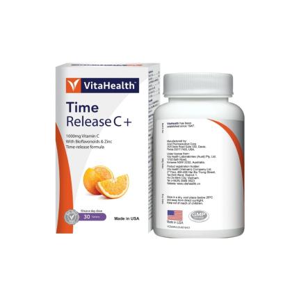 VitaHealth Time Release C+ là viên uống phóng thích Vitamin C từ từ, giúp hạn chế sự khó chịu ở những người có dạ dày nhạy cảm với Vitamin C.